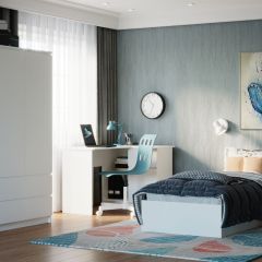 Набор мебели для детской комнаты "Соня" включает необходимые предметы обстановки для спальни двух детей. Такой уголок экономит пространство в детской комнате.