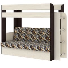 Кровать 2-х ярусная с диваном Карамель 75 (Ромбы) Ясень шимо светлый/темный