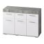 Светлые фасады, стильный корпус в цвете метрополитан грей, лаконичные хромированные ручки – все это про модель комода Инстайл из одноимённой мебельной коллекции.